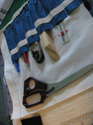I can tell I am feeling better because the different design elements went easily together with a minimum of hand-sewing (Scissor securement had to be hand-sewn because I forgot to do it before I sewed the pocket together.)